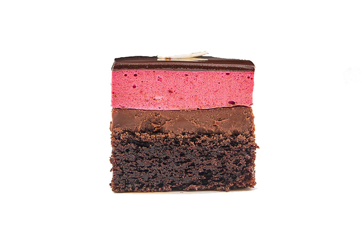 Blaturi pandispan de cacao cu sirop de zahar ars si portocala, crema din ciocolata neagra si ciocolata cu lapte, visine la interior, imbracat in crema de ciocolata neagra cu ciocolata cu lapte, decor din glazura lucioasa, ciocolata neagra, aveline din mousse de ciocolata si decor din visine cu frunzulite de rozmarin