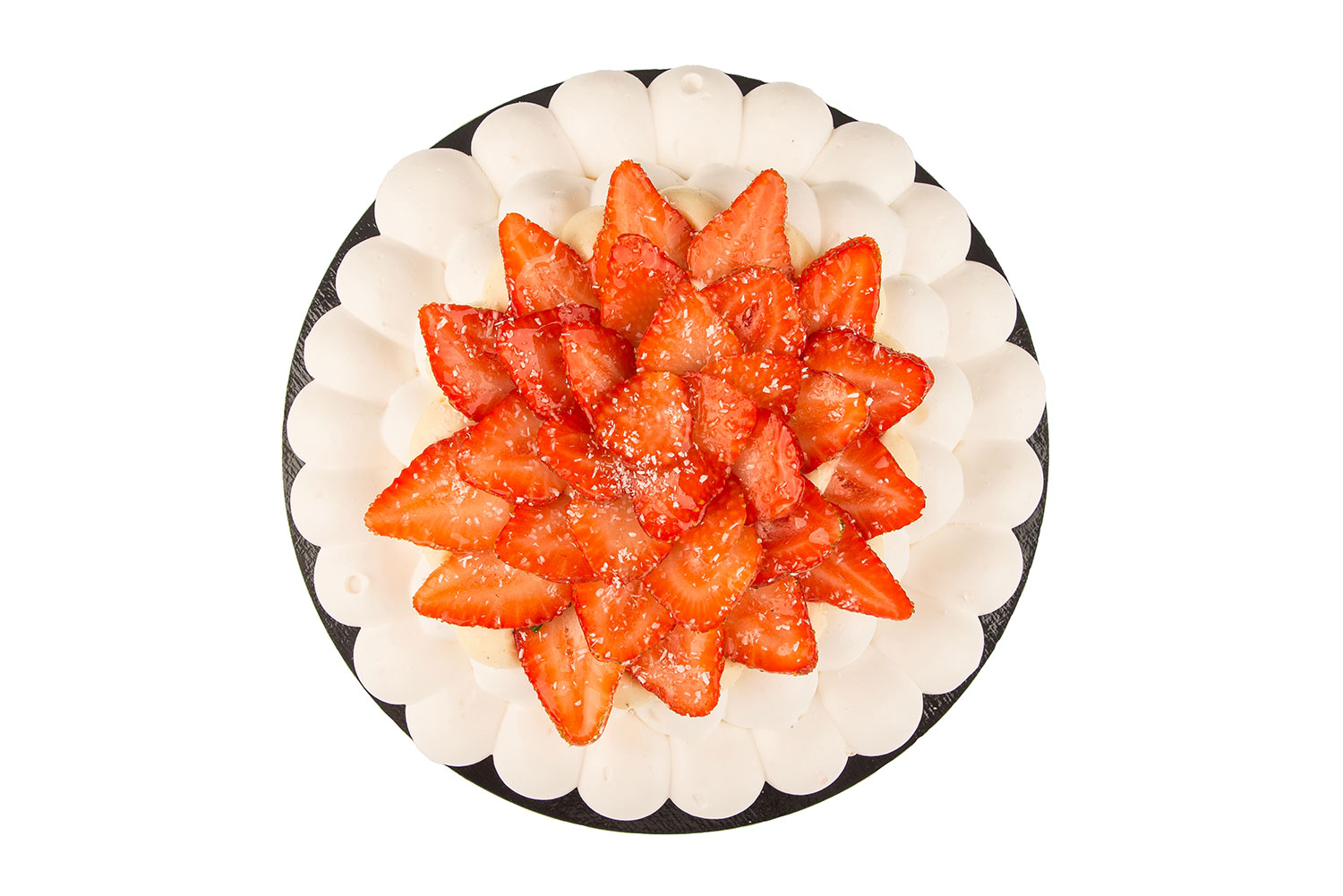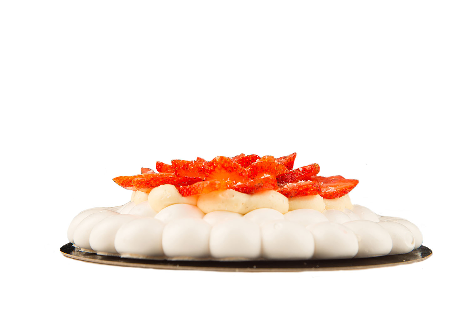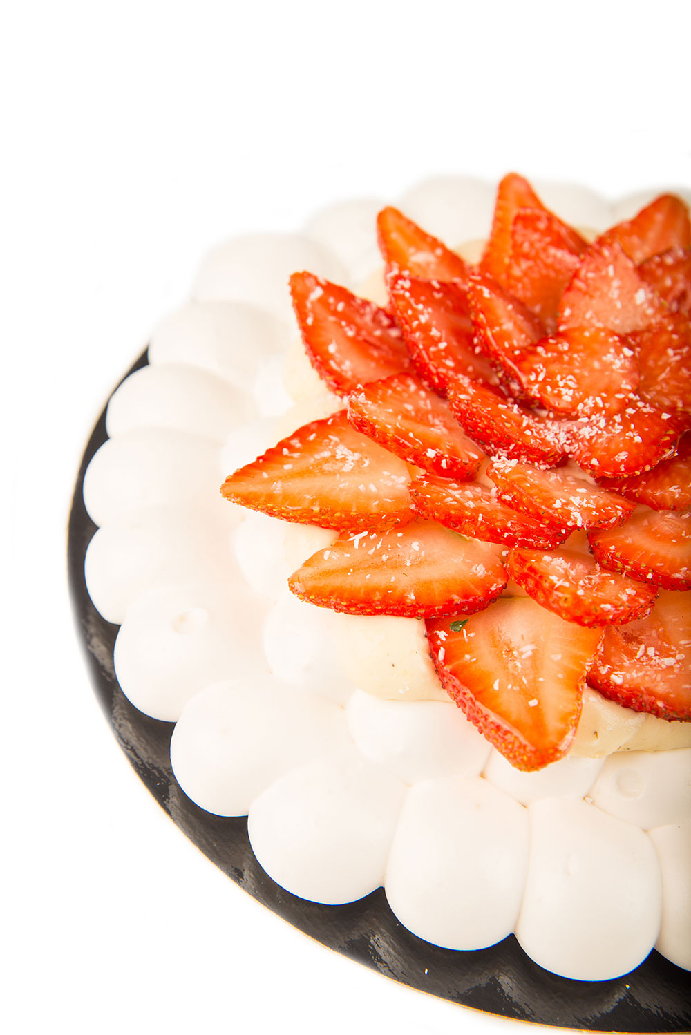 Ingrediente:crema de vanilie (lapte 3,5% grasime, ou pasteurizat, zahar, extract de vanilie, amidon), albus pasteurizat, frisca naturala 35% grasime, zahar, capsune, jeleu neutru, fulgi de cocos