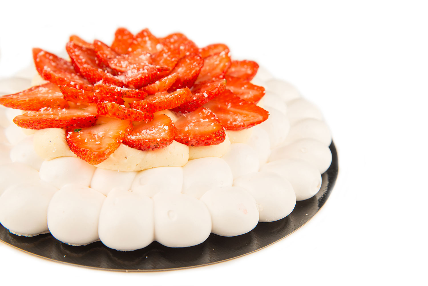 O reteta clasica pe placul iubitorilor de bezea, cu un strat crocant, o crema fina si aerata de vanilie cu frisca naturala si un topping de capsune proaspete.