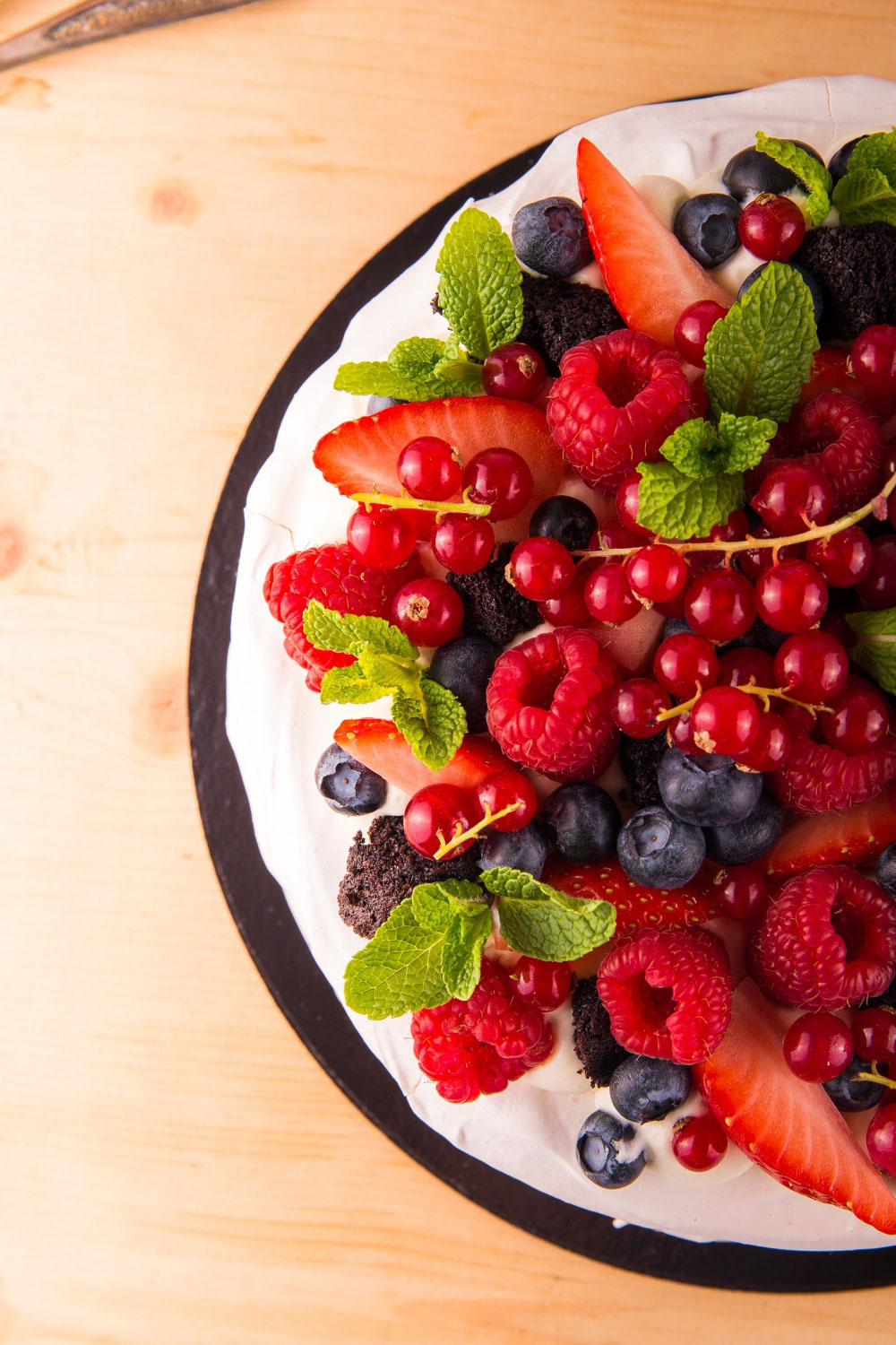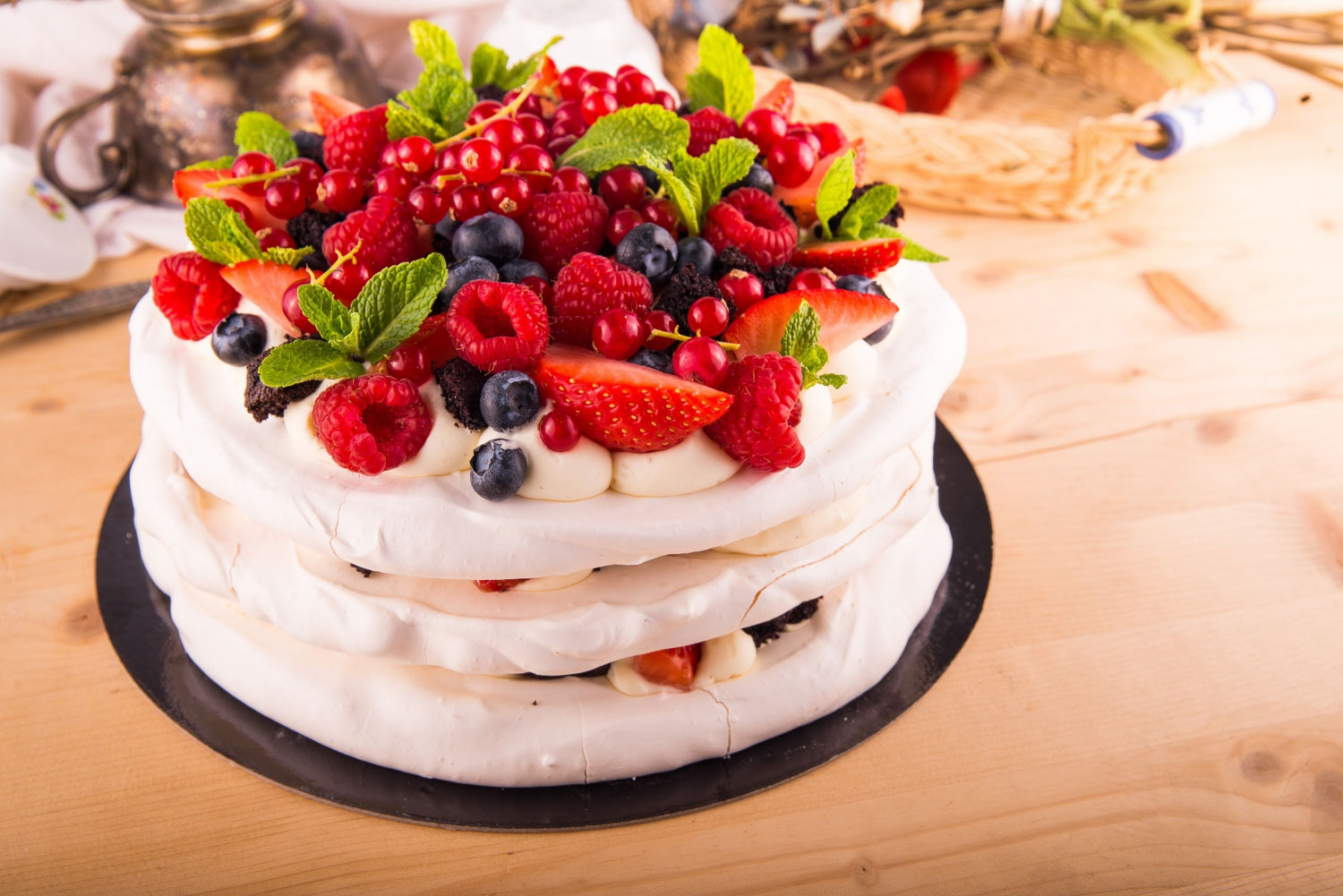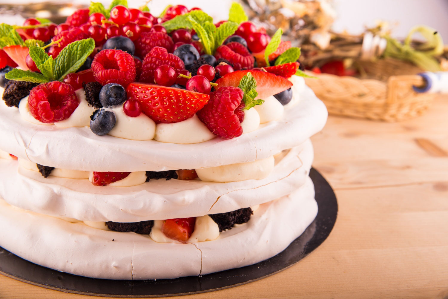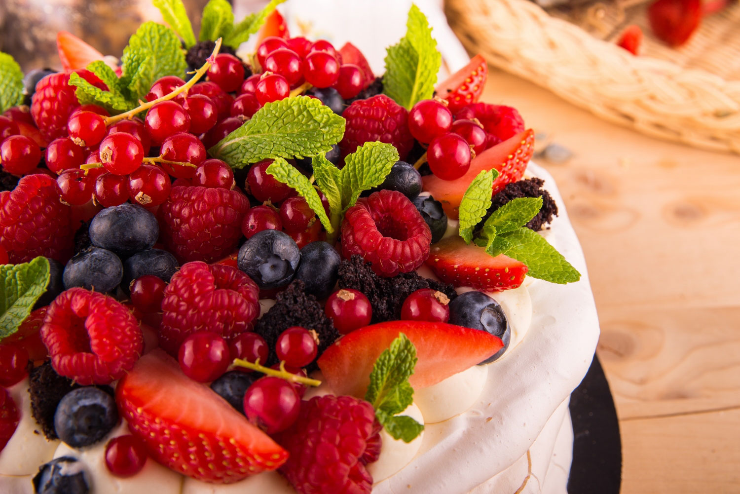 Crema de vanilie (lapte, ou pasteurizat, zahar, extract de vanilie, amidon, tapioca), albus pasteurizat, frisca naturala, zahar, capsune, zmeura, coacaze, afine, unt, smantana, cacao, faina, ou pasteurizat, praf de copt, bicarbonat.